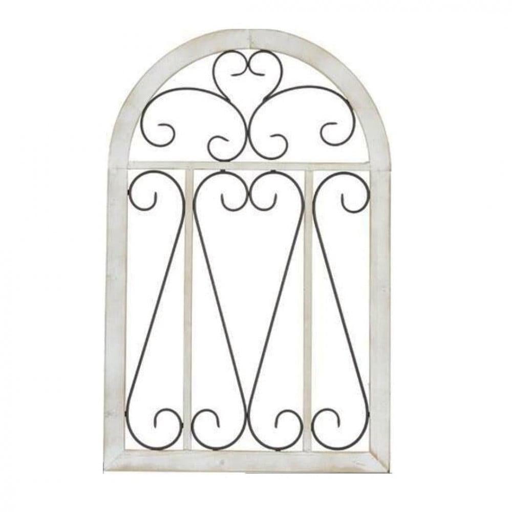 شباك جداري ابيض خشب ريفي مع حديد اسود معتق