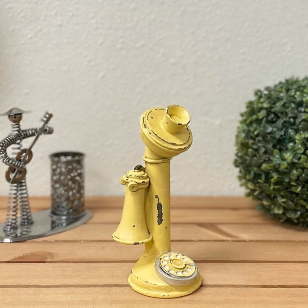 - هاتف قديم عامودي انتيك باللون الأصفر والفضي تحفة فنية مستوحاة من الزمن الجميل لمحبي الديكور القديم والانتيك.
